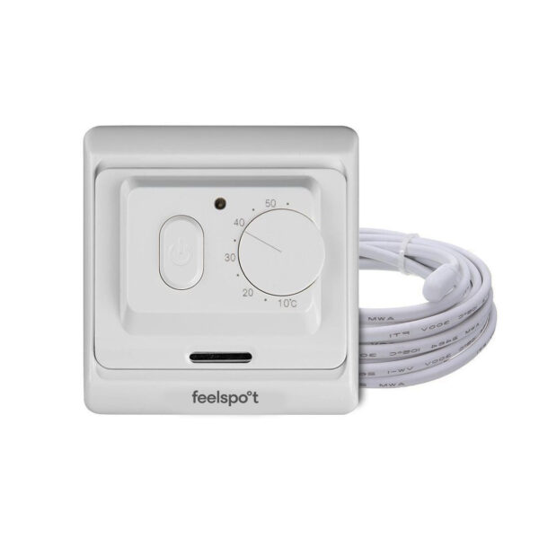 Elektromechaninis neprogramuojamas termostatas (termoreguliatorius) Feelspot WTH71.36 skirtas šildomų grindų ir patalpų temperatūros reguliavimui. Neprogramuojamas termostatas Feelspot WTH71.36 pasižymi patogiu valdymu – pageidaujamą temperatūrą galite nusistatyti rankiniu būdu mygtukų pagalba. Neprogramuojamas termostatas Feelspot WTH71.36 pritaikytas šildymo įrangai (sistemoms), jį galima naudoti kartu su integruotu oro temperatūros jutikliu arba grindyse montuojamu jutikliu, kuris padeda pasiekti puikų komfortą sunaudojant kuo mažiau energijos. Termostatą Feelspot WTH71.36 galima montuoti ir ant sienos, ir po tinku, priklausomai nuo namų ar biuro interjero dizaino, o nedegaus plastiko paviršius garantuoja įrenginio ilgalaikiškumą. Neprogramuojamas termostatas Feelspot WTH71.36 – ieškantiems kokybės ir paprastumo.