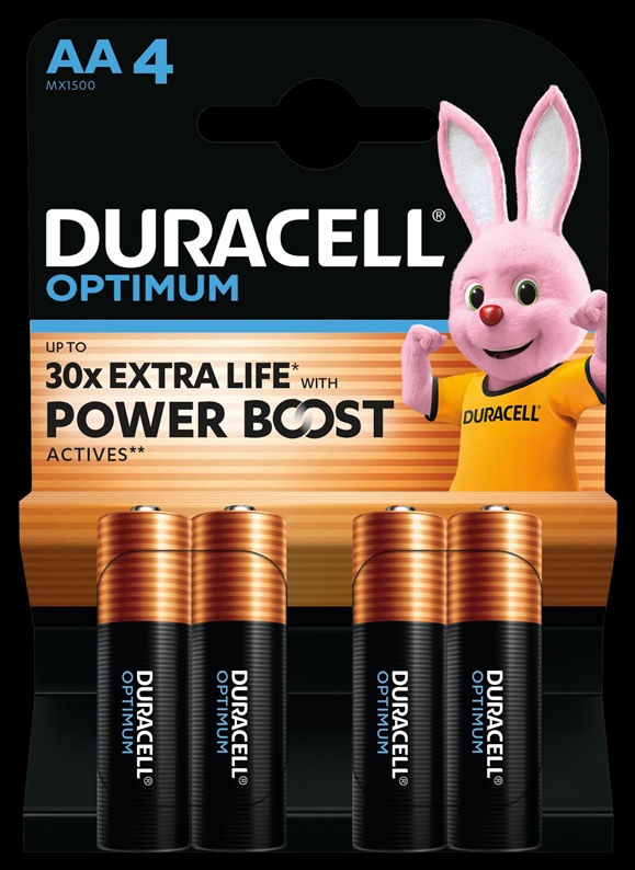 Elementai DURACELL OPTIMUM, AA/LR06, 1.5V, 4 vnt.