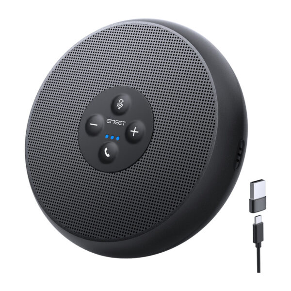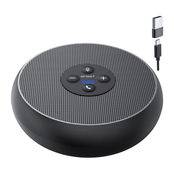 The EMEET OfficeCore M1A is a portable conference speaker that combines two 360° omnidirectional microphones, 16 kHz HD Voice audio quality, 3 W power, and 80 dB sound pressure level, ensuring clear communication in groups of up to 8 people. The device picks up voices within a radius of up to approximately 3 meters, and thanks to Full Duplex technology, it allows for simultaneous speaking and listening without interference. Its compact dimensions of 112 × 112 × 36 mm and lightweight design (196 g) make it easy to take anywhere—from the office to meetings on the go—and the EMEETLINK software allows you to update and customize settings to your preferences.