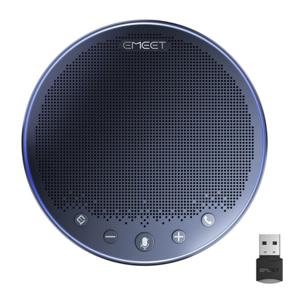 The EMEET OfficeCore M3 conference speaker is a compact device designed for conducting online meetings in small and medium-sized rooms and for mobile work. It is equipped with 4 omnidirectional microphones that capture sound within a 360° range up to 5 meters. Additionally, it uses the VoiceIA®4.2 algorithm for noise reduction and echo cancellation, while full-duplex technology enables natural, uninterrupted conversation. The device is complemented by a wide range of connectivity options—from USB-C and a 3.5 mm jack to Bluetooth with support for two devices—making it easy to adapt to various work scenarios.