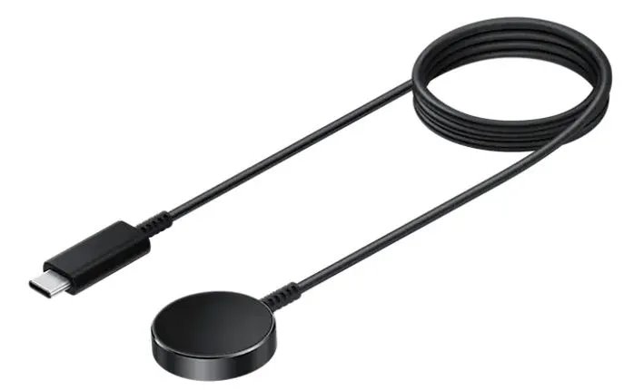 Samsung original charging USB-C cable for the Galaxy Watch 5 smart watch Magnetic attachment to the watch and USB-C connector Properties - an integrated strong magnet holds the watch firmly in place and facilitates charging - USB-C interface - charges with max. 5V / 2A output - dimensions 29.3 x 29.3 x 6.72 mm - weight 31 g - suitable for Samsung Galaxy Watch Active; Active2, 3, 4, 5, 5 Pro