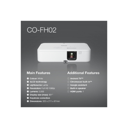 Epson | CO-FH02 | Full HD (1920×1080) | 3000 ANSI lumens | White | Lamp warranty 12 month(s)