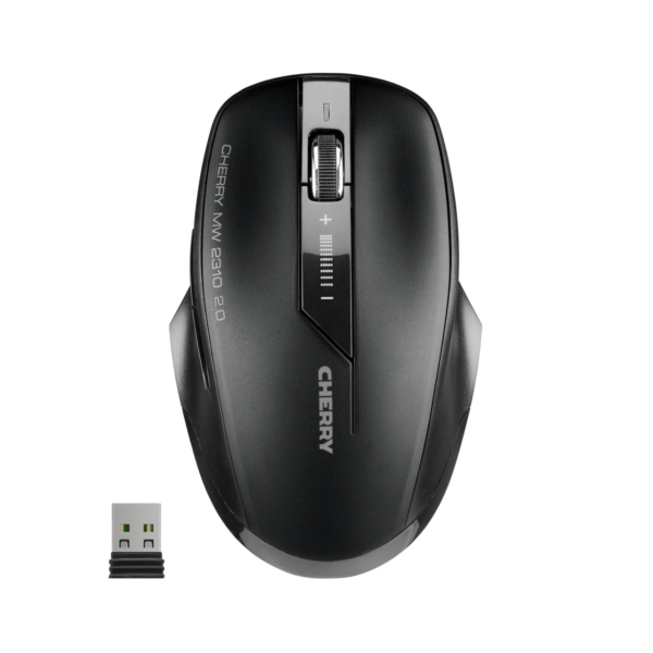 „CHERRY MW 2310 2.0“ – tai universali 6 mygtukų belaidė pelė su 2,4 GHz technologija ir ergonomišku dizainu. Jos nano USB imtuvas yra toks mažas, kad ją galima saugiai laikyti nešiojamajame kompiuteryje net ir judant – pelė visada paruošta naudoti. „CHERRY MW 2310 2.0“ turi optinį jutiklį su 3 reguliuojamomis skiriamosiomis gebomis (1000/1600/2400 DPI). Naudojant DPI jungiklį pelės viršuje, skiriamąją gebą galima pasirinkti vienu mygtuko paspaudimu. Pasirinktą DPI rodo LED indikatorius. Techninė koncepcija daro legendinės „CHERRY MW 2310“ įpėdinį ypač energiją taupančiu. Turint tik vieną pridedamų baterijų komplektą (2 x AA), pelę galima naudoti iki 3 metų, kol jas nereikės keisti. Pelė apačioje turi įjungimo / išjungimo jungiklį, todėl ją galima visiškai išjungti, kai nenaudojate. Pažangios medžiagos, patogus pojūtis ir didelis universalumas paverčia „CHERRY MW 2310 2.0“ tuo, kuo ji yra – „CHERRY“ pele, pasižyminčia puikiu našumu už stebėtinai mažą kainą.