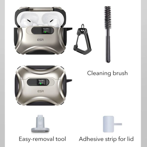 ESR Cyber FlickLock MagSafe case for Apple AirPods Pro 3 – sidabro spalvos