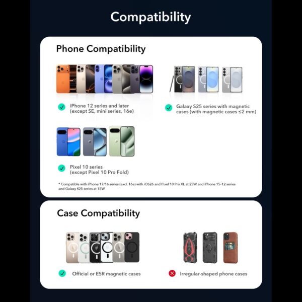The ESR OmniLock Qi2.2 is an advanced MagSafe car mount with 25W fast charging, designed for maximum convenience and safety while driving. This officially certified Qi2.2 wireless charger, equipped with CryoBoost technology, provides stable, fast, and safe charging for MagSafe-compatible devices while actively cooling your phone to maintain peak performance.