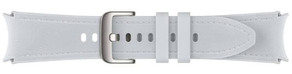 Original Samsung strap for your Samsung smart watch made of a combination of vegan leather and fluoroelastomer on the inner part. The hybrid leather strap exudes premium quality using an outer leather and inner sweat-resistant fluoroelastomer material. The design with advanced aesthetic elements gives the strap a classic and at the same time sporty look that adapts to all your needs. The strap has been designed to keep the watch firmly and stably attached to your wrist, improving its ability to measure and provide more accurate readings. You can change the strap in seconds. The new design comes with a simple button, allowing you to easily attach and detach the strap with a single push. Properties - Hybrid leather strap exudes premium quality - Made of vegan leather with stitching - Sweat-resistant fluoroelastomer inner side - Simple button to change the strap - Metal buckle - Safe switching - Strap width for attachment 20mm - Compatible with Galaxy Watch 4, Galaxy Watch 4 Classic, Galaxy Watch 5, Galaxy Watch 5 Pro, Galaxy Watch 6, Galaxy Watch 6 Classic