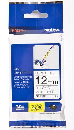 Etikečių juosta Brother TZe-FX231, 12 mm, juoda ant balto, 8 m