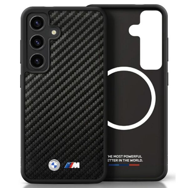 BMW Leather Carbon MagSafe Samsung Galaxy S25 juodos spalvos