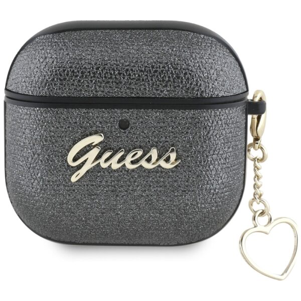 Guess Metallic Script Charm AirPods 4 juodos spalvos