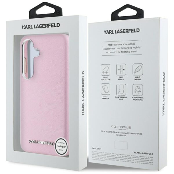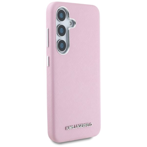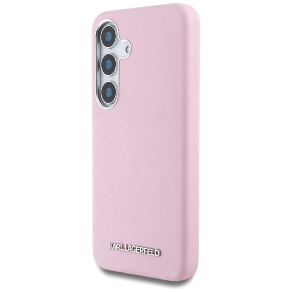 Karl Lagerfeld Saffiano Full Wrapped Elongated Metal Logo MagSafe Samsung Galaxy S25 dėkals telefonui rožinės spalvos