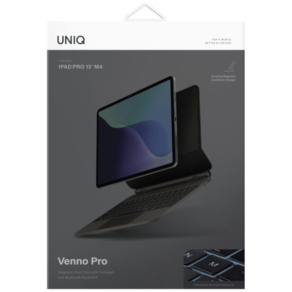 Dėklas UNIQ Venno Pro Magnetic Smart su klaviatūra skirtas Apple iPad Pro 13″ M4 (2024) juodos spalvos
