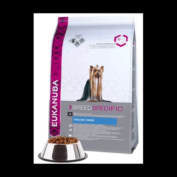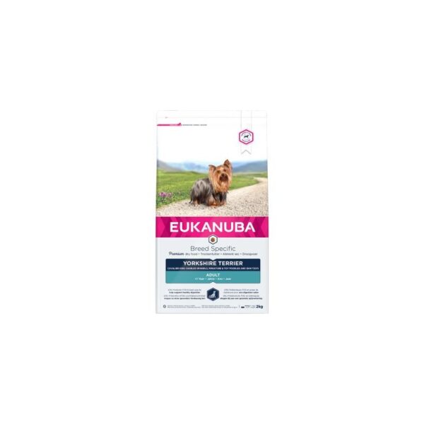 EUKANUBA Breed Specific sausas šunų pašaras Jorkšyro terjerams, taip pat idealiai tinka Kavalieriaus karaliaus Karolio spanieliams, miniatiūriniams ir nykštukiniams pudeliams ir ši cu – kruopščiai subalansuotas norint padėti jūsų šuniui nugyventi ilgą ir sveiką gyvenimą.