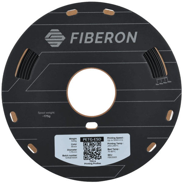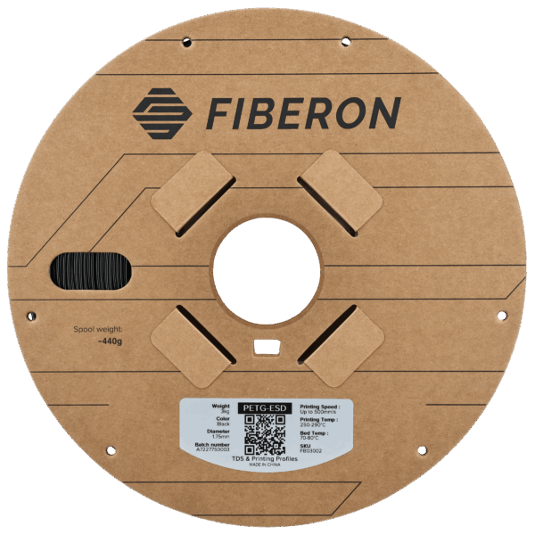 Fiberon PETG-ESD is a PETG-based 3D printing filament designed for applications where electrostatic discharge (ESD) safety is important. With added carbon nano-tubes, it offers durability and impact resistance while maintaining the ease of printing that PETG is known for.