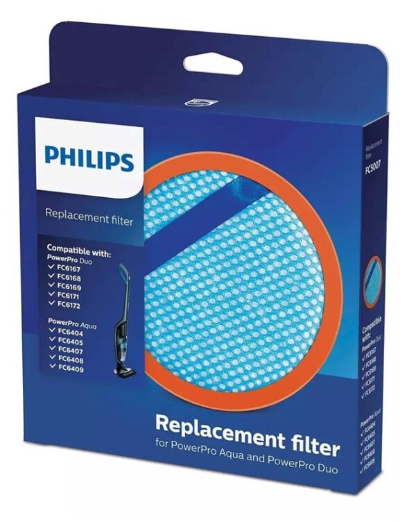 Prekės ženklas- Philips. Artikulas- FC5007/01. Filtras- Poroloninis. Vienetai pakuotėje- 1. Tinka modeliams- Philips PowerPro Aqua: FC6404, FC6405, FC6407, FC6408, FC6409. PowerPro Duo: FC6167, FC6168, FC6169, FC6171, FC6172.. Suderinami gamintojai- Philips. Papildoma informacija- Plaunamas.