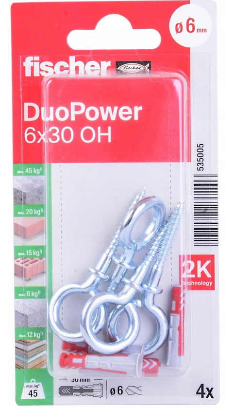 FISCHER KOŁEK DUOPOWER 6×30 SU KABLIUKU SU ĄSA /4vnt.