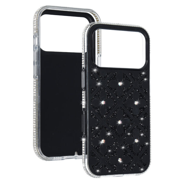 Flower Case – an elegant glamour-style case combining a hard PC back with flexible TPU sides. Sparkling rhinestones along the frame and back add a luxurious look, while the raised edges around the screen and camera provide extra protection for everyday use.