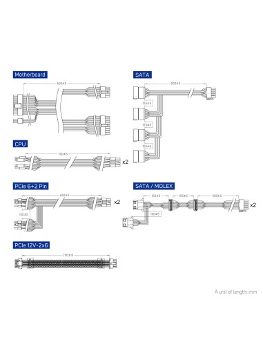 Dual PCIe 6+2Pin cables and a versatile 12V-2×6 cable offer flexible configuration for even the most power-hungry NVIDIA or AMD graphics cards.