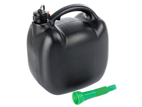 Plastic jerrycan which ensures exceptional durability. Thanks to its solid construction, it guarantees long-term use. It is ideal for storing and transporting liquids such as gasoline or diesel. The jerrycan has a plastic cap and a funnel. The jerrycan is also perfect as a practical container for storing spare fuel for different types of equipment, such as lawn mowers, gasoline saws or snow blowers.