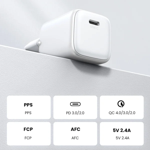 GaN USB C 30W PD Ugreen Nexode Mini fast charger – baltos spalvos