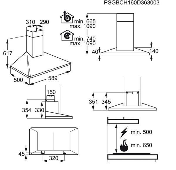 - Montavimo tipas: Kamino tipo, plotis 60 cm