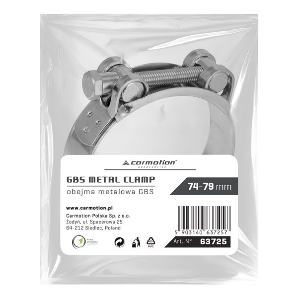 GBS 74-79 mm metal clamp for heavy-duty connections.