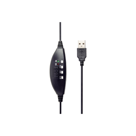 | Kitos savybės | USB headphones with rotating microphone boom, Digital audio chipset for crystal clear sound, Practical in-line control for volume, mute and microphone, Large comfortable ear cushions, Comfortable, adjustable headband. |