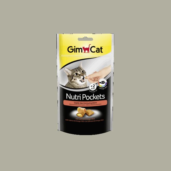 GimCat Nutri Pockets with Salmon & Omega 3&6 skanėstai katėms su Lašiša, Omega 3 ir 6 riebalų rūgštimis 60g