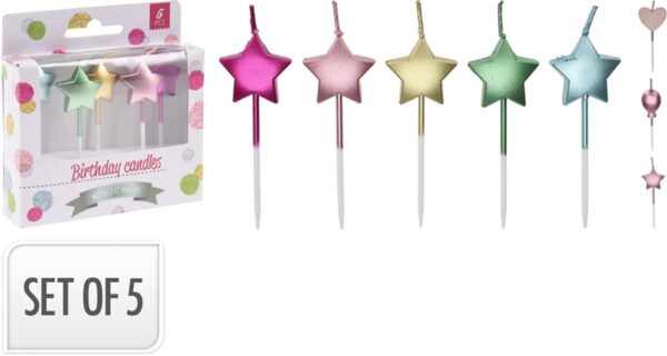 Gimtadienio žvakutė S37400190, įvairių spalvų/, 6 cm, 5 vnt.