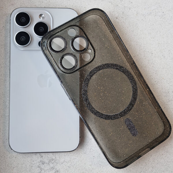 Glitter Magsafe Case to mieniące się etui wykonana z elastycznego materiału TPU (boki) oraz z twardego Acrylicu (plecki). Futerał zabezpiecza tył, boki, aparat oraz ekran smartfona. Wbudowane w etui magnesy sprawiają, że etui jest kompatybilne z akcesoriami Apple MagSafe.