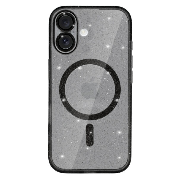 Glitter Magsafe dėklas skirtas Apple iPhone 16 juodos spalvos skaidrus
