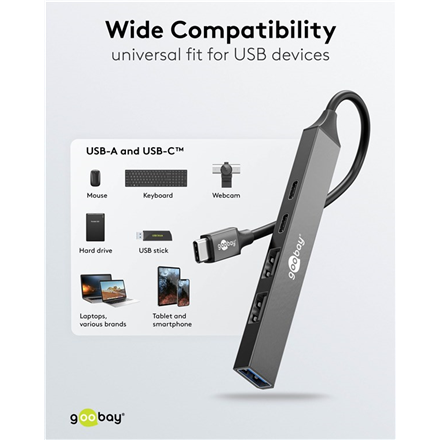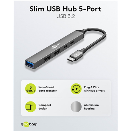 Goobay Slim 5-Port USB Hub, USB-C to USB-C/USB-A, 5 Gbit/s | 74460
