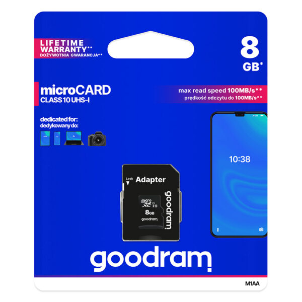 GOODRAM Memory MicroSD Card – 8GB with adapter
