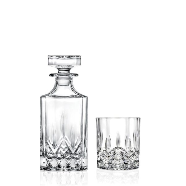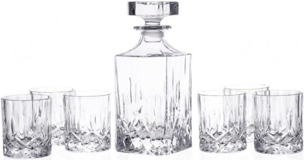 Prekės ženklas- RCR. Talpa- 0.75 l. Spalva- Skaidri. Medžiaga- Krištolas. Gėrimų indo tipas- Stiklinė, Grafinas. Skirta gerti/pilti- Viskiui. Komplekte- Grafinas ir 6 stiklinės. Vienetai pakuotėje- 7. Garantija- 24 mėn. Papildoma informacija- Dekanteris ir stiklinės. Dekanterio tūris: 750 ml.