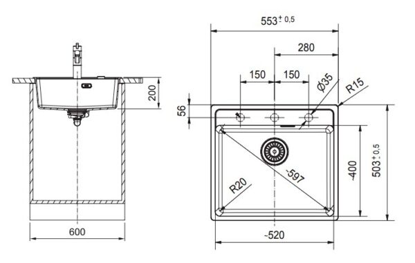 Granitinė plautuvė Franke Maris MRG 210-52, 135.0683.034, Onyx – juoda