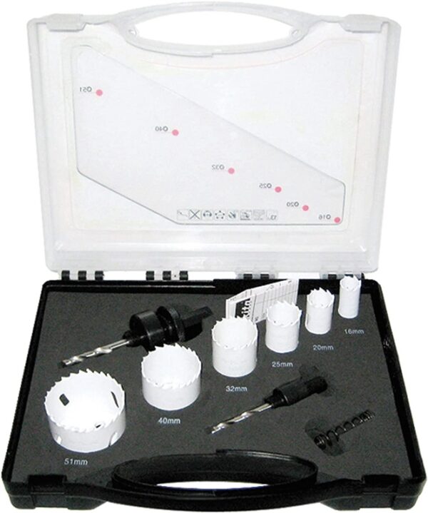Prekės ženklas- Makita. Artikulas- D-47139. Ilgis- 270 mm. Plotis- 240 mm. Aukštis- 80 mm. Skersmuo- 20 – 65mm. Svoris- 0.998 kg. Medžiaga- Metalų lydinys, Plastikas. Tvirtinimo tipas- Šešiakampis. Komplekte- HSS Bi-Metal gręžimo karūnų komplektas 6-dydžiai: 20mm, 25mm, 32mm, 40mm, 51mm, 65mm. Garantija- 24 mėn. Su dėklu- Taip. Papildoma informacija- Ilgis: 270 mm. Plotis: 240 mm. Aukštis: 80 mm. Svoris: 0,998 kg.