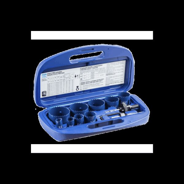 - Rinkinyje yra 9-ių dydžių karūnos ( 19, 22, 29, 35, 38, 44, 51, 57, 64 mm) su reikiamais priedais