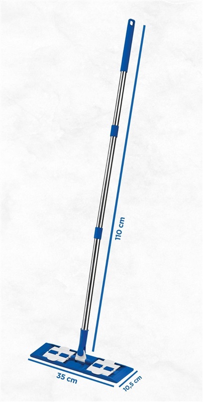 Prekės ženklas- -. Ilgis- 110 – 110cm. Darbinės dalies ilgis- 35 cm. Darbinės dalies plotis- 10.5 cm. Spalva- Mėlyna, Balta, Chromo. Medžiaga- Metalas, Plastikas. Su nugręžimo funkcija- Ne. Privaloma garantija- 24 mėn. Teleskopinis kotas- Ne. Garantija juridiniams asmenims- 12 mėn. Tinkantys priedai- Tinkančios šluostės 000101168063.