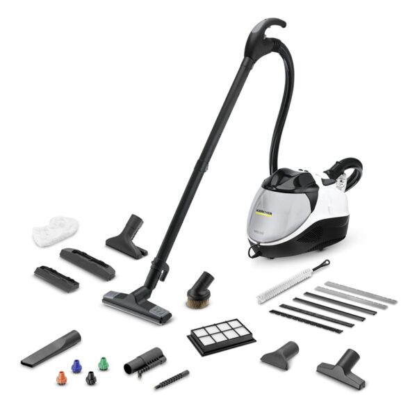 Prekės tipas- Grindų valymo įrenginiai. Prekės ženklas- Kärcher. Modelis- SV 7. Dulkių siurblio tipas- Plaunantis. Ilgis- 515 mm. Plotis- 336 mm. Aukštis- 340 mm. Svoris- 9.4 kg. Spalva- Balta. Vandens bakelio talpa- 0.45 l. Komplekte- Hepa filtras. Dulkių rinktuvo talpa- 1.2 l. Galia- 2200 W. Vamzdžio tipas- Teleskopinis. Siurbiamoji galia- 2200 W. Triukšmo lygis- 71 dB. Skysčių siurbimas- Ne. Turbo antgalis- Ne. Filtras- HEPA. Laido ilgis- 6 m. Galios reguliavimas- Ant dulkių siurblio. Antgalio perjungimas (grindys / kilimas) – Taip. Antgalis plyšiams – Taip. Antgalis baldams- Taip. Privaloma garantija- 24 mėn. Antgalis kilimui- Taip. Antgalis dulkėms – Taip. Papildoma informacija- Garų valymas, siurbimas ir džiovinimas vienu brūkštelėjimu. Vanduo, didesni nešvarumai, putos ir HEPA filtrai (EN 1822:1998) pašalina net mažiausias purvo daleles. Greitas ir paprastas perjungimas tarp 3 skirtingų programų, skirtų kietoms grindų dangoms ir kilimams..