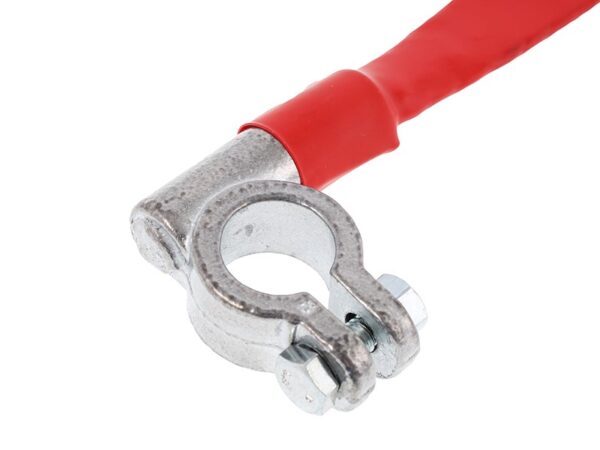 Positive ground braid, 400mm long, made of copper, terminated with a 25 diameter clamp, M10 hole.