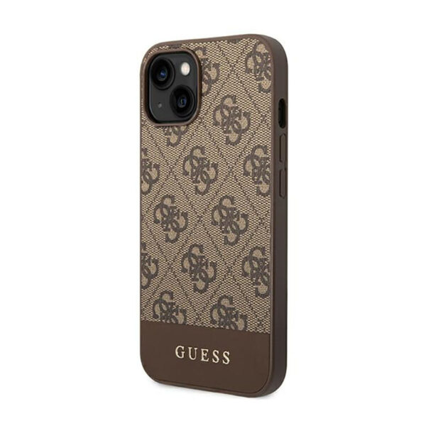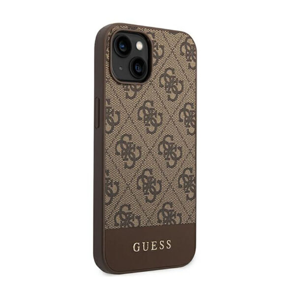 Guess 4G Bottom Stripe Metal Logo Collection – dėklas skirtas Apple iPhone 14 Plus Brown