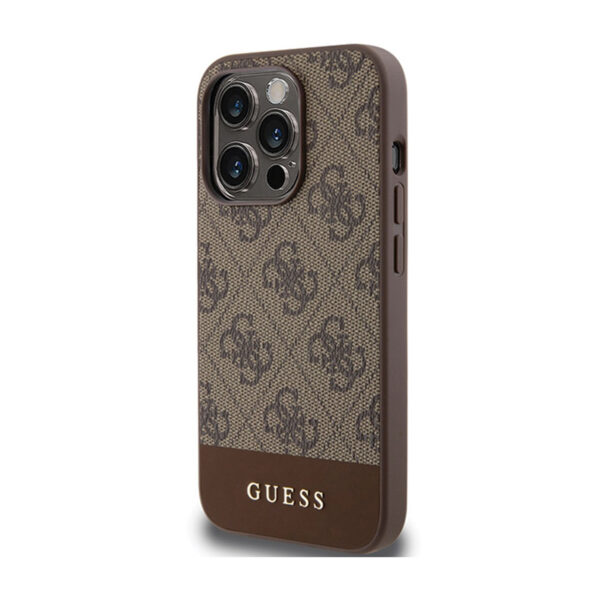 Guess 4G Bottom Stripe Metal Logo Collection – dėklas skirtas Apple iPhone 15 Pro brown