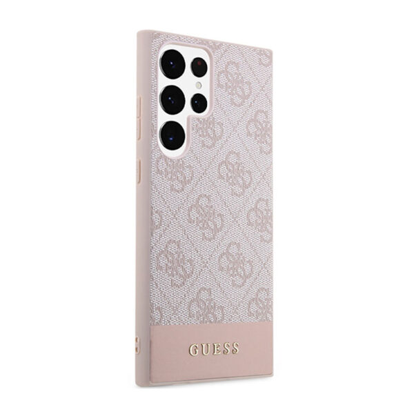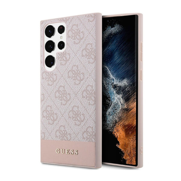 Guess 4G Bottom Stripe Metal Logo Collection – dėklas skirtas Samsung Galaxy S23 Ultra Pink