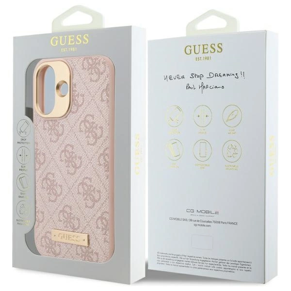 Guess 4G Logo Plate MagSafe Apple iPhone 16 Case – dėklas telefonui rožinės spalvos