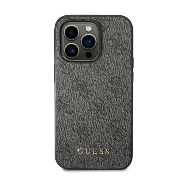Guess 4G Metal Gold Logo dėklas skirtas Apple iPhone 14 Pro Max Grey