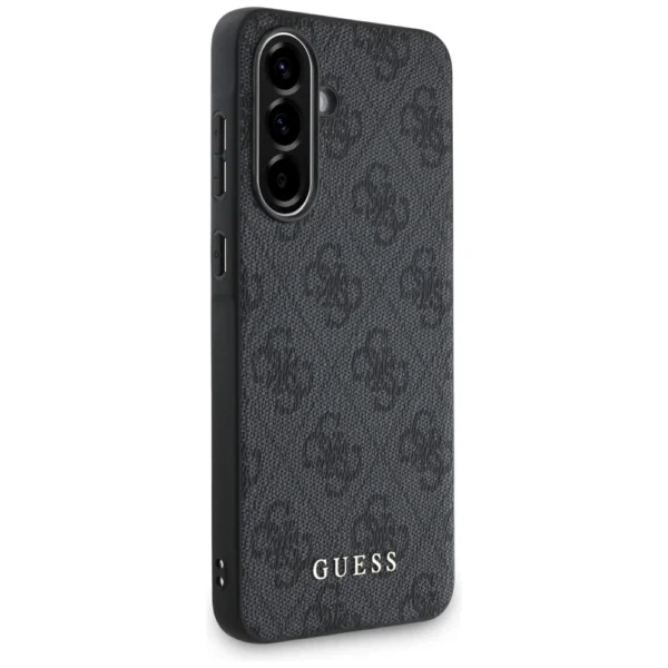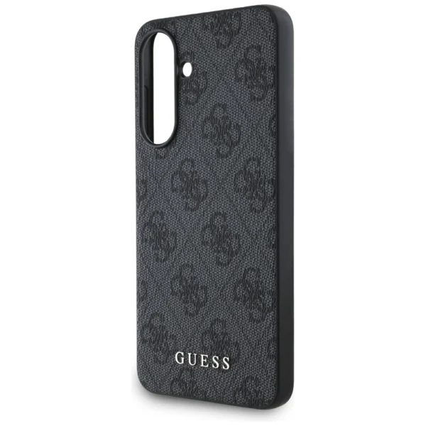 Guess 4G Metal dėklas telefonui aukso spalvos Logo Samsung Galaxy A56 – dėklas telefonui juodos spalvos