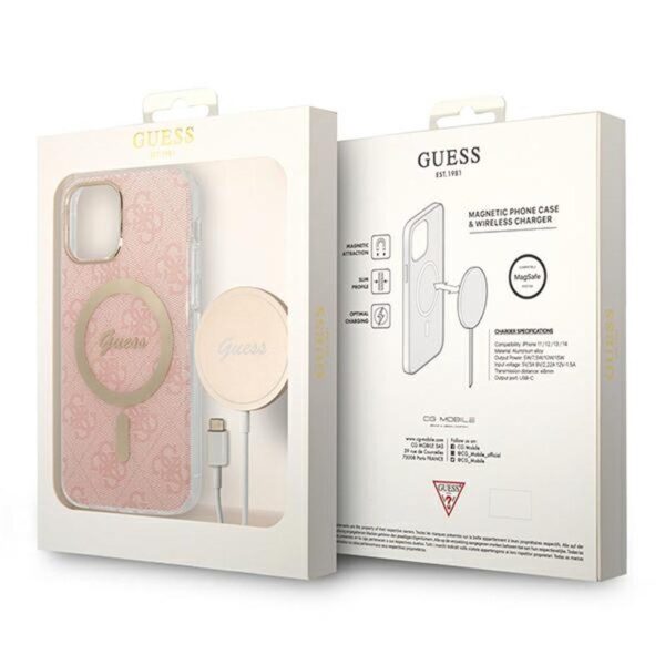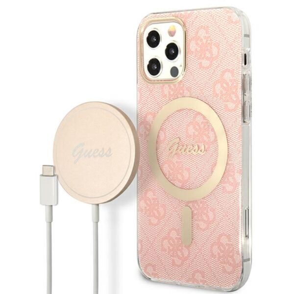 Guess Bundle Pack MagSafe 4G – Set of dėklas skirtas Apple iPhone 12 / Apple iPhone 12 Pro + MagSafe charger Pink/Gold