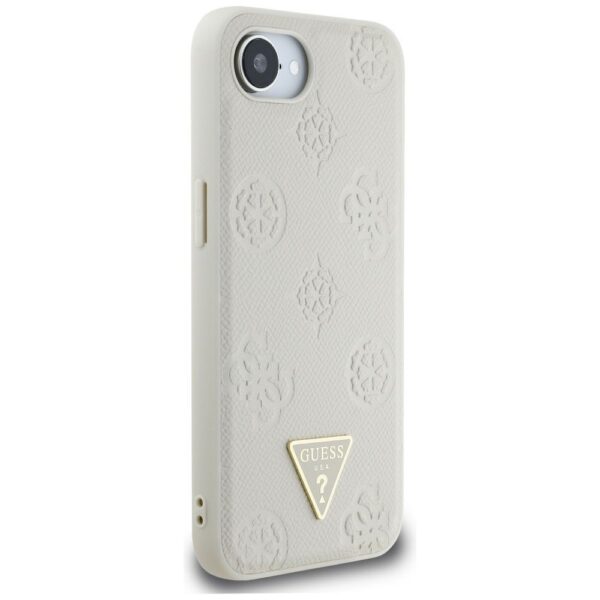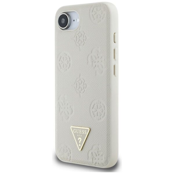 GUESS dėklas skirtas Apple iPhone 16e (SE 4 2025) suderinamas su MagSafe GUHMPSE4PGBTME (Grained PU Hot Stamp Peony Triangle Logo) beige