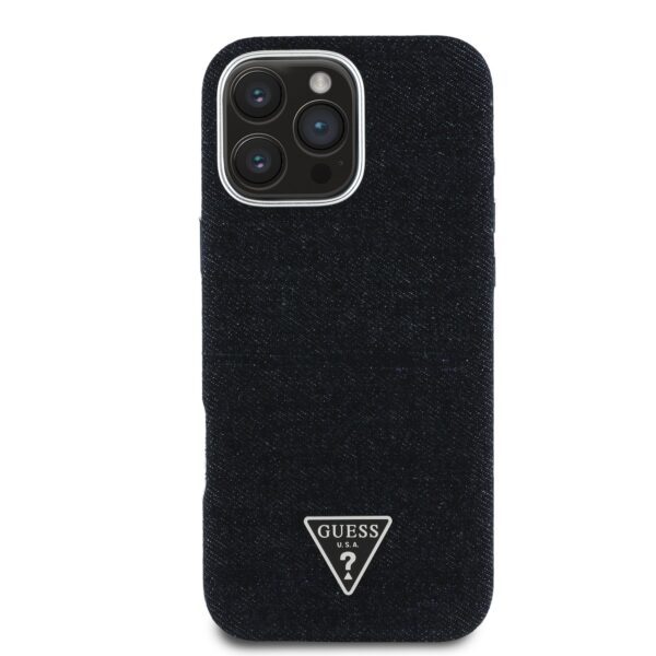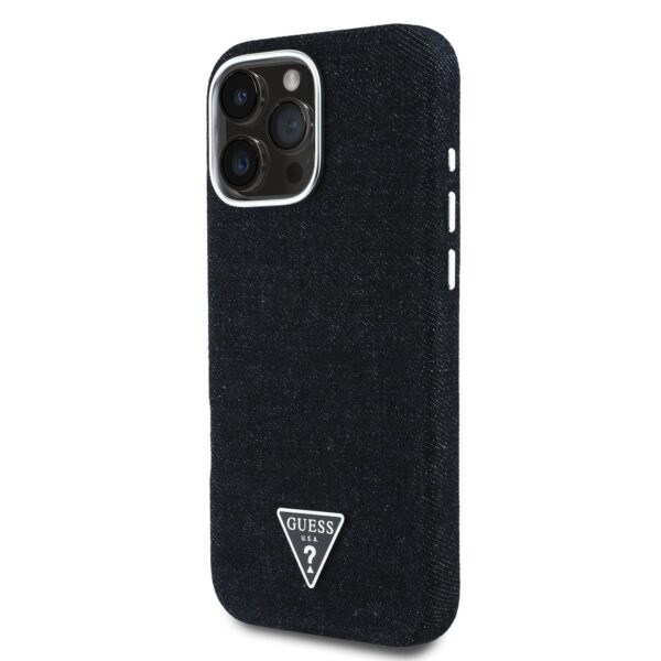 Guess Denim Triangle Logo MagSafe dėklas skirtas Apple iPhone 16 Pro juodos spalvos