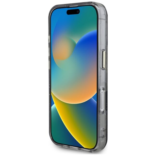 Guess Glitter Flowers Triangle Buttons MagSafe Apple iPhone 16 dėklas telefonui juodos spalvos