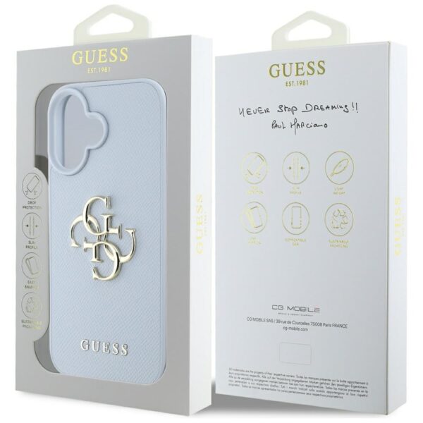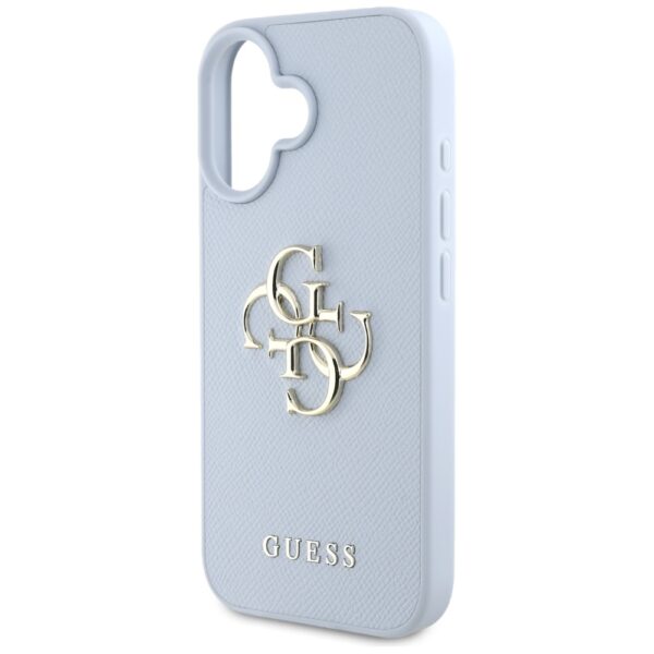 Guess Grained Big 4G Logo Small Classic Logo Apple iPhone 16 dėklas telefonui mėlynos spalvos